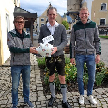 Als einer der drei Stifter hat Christian Wieninger jetzt ein Sparschwein mit dem Geld für die Stiftung von Hans Wallner und Daniel Köck überreicht bekommen. Er bedankte sich im Namender Stiftung und versicherte, dass mit dem Geld gemäß der Stiftungszweck soziale und kulturelle Projekte in der Region unterstützt werden.