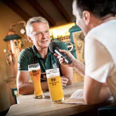 Ja, das ist eine längere Geschichte. Aber ich fasse sie in ein paar Sätzen zusammen. Ein guter Freund von mir, der Schwarz Hans, war zwölf Jahre Brauereiführer hier beim Wieninger. Als er seinen 80. Geburtstag gefeiert hat, meinte er, dass es jetzt irgendwann mal genug ist mit den Brauereiführungen. Nachdem er gewusst hat, dass ich in meinem bisherigen Beruf in der Freistellungsphase bin, hat er gemeint: „Du, das wäre doch was für Dich, Du kannst doch die Brauerei sicher gut präsentieren!“. Er hat den Kontakt hergestellt und seitdem bin ich dabei.