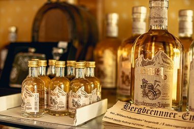 Der Enzianbock ist ein richtig schönes Wieninger-Bockbier, das in einem 80 Jahre alten Enzianfass der Enzianbrennerei Grassl liegt. Die Idee ist damals vom Wieninger Braumeister Bernhard Löw gekommen. Er hat uns gefragt, ob wir ein altes Enzianfass haben, damit man den typischen Enziangeschmack ins Bier bekommt. Wir haben die Idee dann erst einmal mit dem Zollamt besprochen, weil bei uns alle Fässer registriert sind. Der Enzian liegt drei Jahre in tiefen Felsstollen auf Esche. Und so haben wir das Enzianfass dann zur Verfügung gestellt.