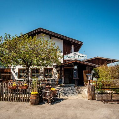Der einladende Biergarten wird im Sommer mit wohligem Schatten der 12-jährigen Kastanie bedeckt. Die Familie legt höchsten Wert auf sorgfältig ausgewählte Zutaten, ausschließlich regionaler Herkunft. So wundert es niemanden, dass „der Kamin“ mit seiner urigen und geselligen Atmosphäre nicht nur für seine zarten Filet-Steaks des heimischen Weiderinds bekannt ist. Auch die täglich frischen Salate und die Wieninger Bierspezialitäten sorgen stets für ausgebuchte Plätze im fast kuscheligen Beisl, mitten im Zentrum von Inzell.