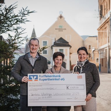 Eine Ski-Tour inklusive Leihausrüstung mit dem eigenen Chef? Ein sicherlich unvergessliches Erlebnis, das die Mitarbeiter der Brauerei Wieninger gewinnen konnten. Der exklusive Tag zusammen mit Christian Wieninger war einer der Hauptpreise der außergewöhnlichen Tombola auf der Firmen-Weihnachtsfeier. Die Idee traf offensichtlich ins Schwarze. Durch den Losverkauf konnten bemerkenswerte 1.405,- Euro gesammelt werden, die die Mitarbeiter der Brauerei Wieninger komplett an die Max-Wieninger-Stiftung spenden. Stiftungsvorstand Christian Wieninger nahm den Scheck der Mitarbeiter mit sichtlicher Dankbarkeit entgegen.