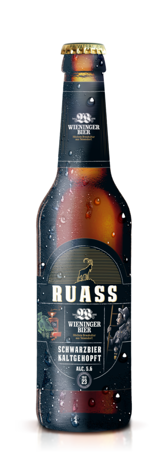 Einen Ruaß nennt man bei uns den Kaminkehrer oder Schornsteinfeger. Dieses Bier ist wie der Ruaß „ein dunkler Geselle“ - schwarz wie die Nacht. Es duftet verführerisch nach Kaffee, Tabak und schwarzem Tee. Und wenn sich im Trunk röstige, blumige und rauchige Noten vereinen, dann ist der „Ruaß“ ein echter Glücksbringer.