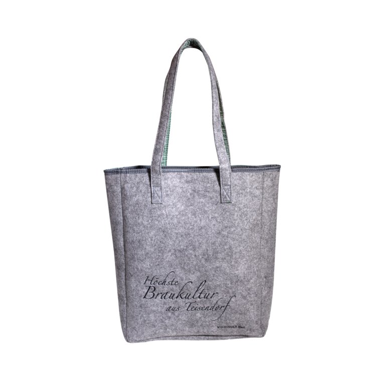 Egal ob auf dem Wochenmarkt oder im Outlet – mit unserem Einkaufstascherl aus Filz bist Du immer gut angezogen! Außen zeigt es sich dezent grau mit grüner Applikation, innen trägt es angesagtes Karomuster und passt so zu jedem Outfit. Die weichen Griffe liegen auch dann angenehm in der Hand, wenn der Inhalt etwas schwerer ist. Hochwertig verarbeitet und mit viel Platz ausgestattet wird unser Filztascherl Dein treuer Begleiter und ein schöner Grund wieder amoi zum eikaffn zum geh