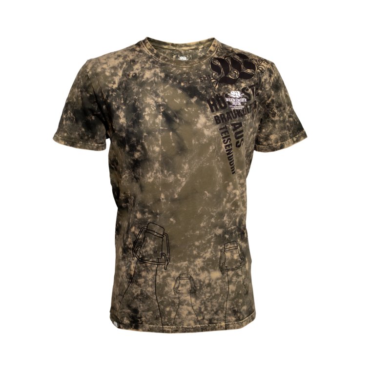 Wer hätte gedacht, dass Tarnfarben so ein Blickfang sein können? Dieses T-Shirt im coolen Batik-Design wird Dein absoluter Liebling im Kleiderschrank! Die originelle Optik sorgt für einen garantiert unverwechselbaren Auftritt. Der sportliche Schnitt mit Rundhals-Ausschnitt trägt sich angenehm auf der Haut und macht eine gute Figur in allen Lebenslagen. Unkompliziert, pflegeleicht, cool. Ein klassisches „Des muas ma homm!"
