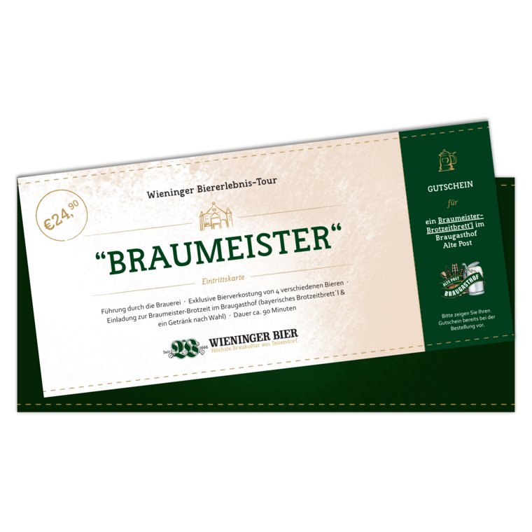 - Einladung zur Braumeister-Brotzeit im Braugasthof (bayerisches Brotzeitbrett´l & ein Getränk nach Wahl)